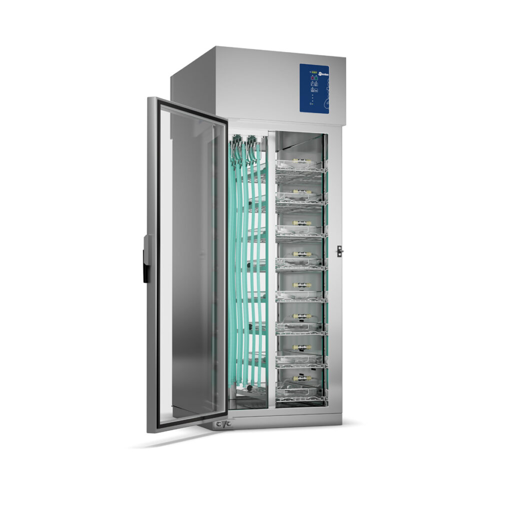 Equipo que seca y acondiciona aerosoles y medicamentos para administración respiratoria, asegurando su efectividad y estabilidad.